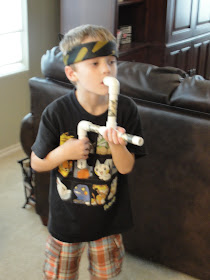 When the boys arrived, they each were given a Rambo style headband. The camo head bands came from Oriental trading (along with most of the other party goods)